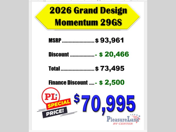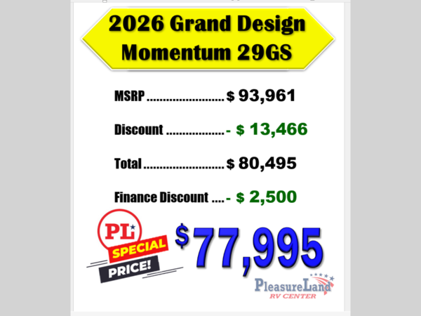 Grand Design Momentum G-Class toy hauler 29GS highlights:
