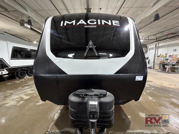 Just imagine leaving the world behind and secluding yourself away with your favorite people in your Grand Design Imagine travel trailer! The Imagine has been designed to enjoy camping and includes a high-capacity furnace, a heated and enclosed underbelly with suspended tanks, a designated heat duct to the subfloor, and a high-density roof insulation with attic vent. You'll have a large panoramic window to let natural lighting in and an adjustable Power Awning with LED Lights for those night gatherings. The exclusive drop-frame pass-through storage compartment is going to allow you to bring along lots of equipment, and the universal docking station is an all-in-one location for utilities and hook-ups. You'll also have oversized tank capacities so that you can fill and empty your tanks less often.