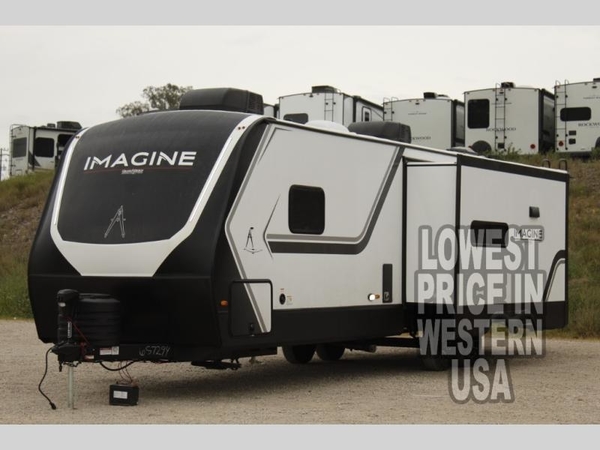 A great travel trailer for larger families or those that enjoy traveling with a few friends! This Imagine quad bunk model features two private bedrooms, with the master up front including a private entry/exit door just beyond a spacious walk-through bathroom that features a 30" x 36" walk-In shower with skylight to bring in more natural lighting each day, plus a toilet, sink and linen storage. In the kitchen, a nice island for food prep and cleaning up makes it easy to be part of the conversation in the room while you get meals ready for everyone.  Speaking of food prep, how about the outside griddle and 1.6 cu. ft. refrigerator which is perfect for cooking outside, or for making late night snacks when all are enjoying the evening under the stars or in lawn chairs under one of two 9' 6" awnings with LED lighting. Your kids can bring along extra guests with the added space that a quad bunk model provides!