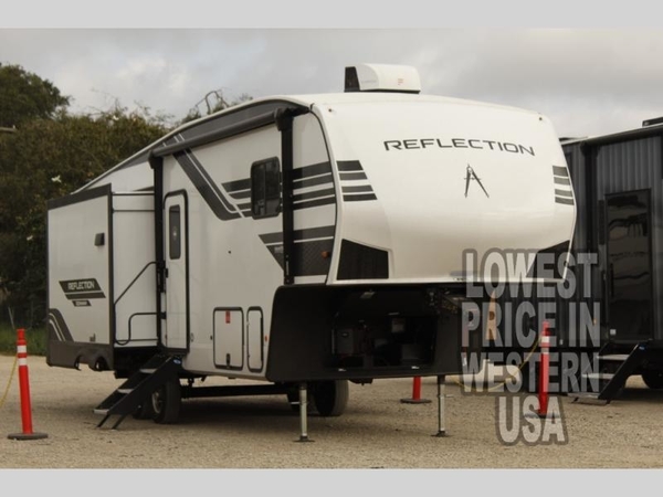 Each Reflection 100 Series fifth wheel by Grand Design is affordable and packed with luxury for unforgettable camping memories! The MorRyde CRE3000 suspension system and Goodyear Endurance tires will provide smooth towing from home to campground. And the solar package with a 180W solar panel, 60 Amp charge controller and 12V refrigerator will allow you to camp for longer periods of time and in more locations! A heated and enclosed underbelly with circulating heat is included in the Arctic 4-Seasons Protection Package, along with a double insulated roof and front cap, and thermofoil insulation under the holding tanks so you can camp all year long if you choose. You will appreciate having an on-demand water heater for hot showers after exploring, and the universal all-in-one docking station will let you monitor your RVs tanks levels and functions with ease. These models also include many luxurious interior features, such as premium Congoleum flooring, pleated shades, residential cabinetry, and matte black fixtures and hardware. Don't let the Reflection 100 Series fifth wheels pass you by!