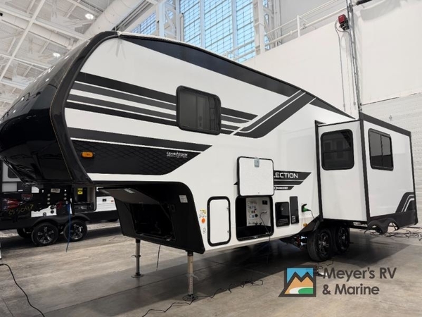 With any Reflection 150 Series fifth wheel by Grand Design, there is more available payload capacity and a broader range of half-ton trucks capable of towing this fifth wheel, and no slider hitch is needed thanks to the 90-degree turning radius which makes them short bed friendly and easier to tow. The mandatory Ultimate Power package provides a "One-Touch" automatic leveling system and a detachable power cord with LED light for easy setup, plus motion sensor pass-through lighting and entry lighting, and the Tire Linc TPMS will help you stay safe on the road. The interior offers residential cabinetry and premium Congoleum flooring, to the booth dinette and residential-style window treatment. Make your refined decision today!