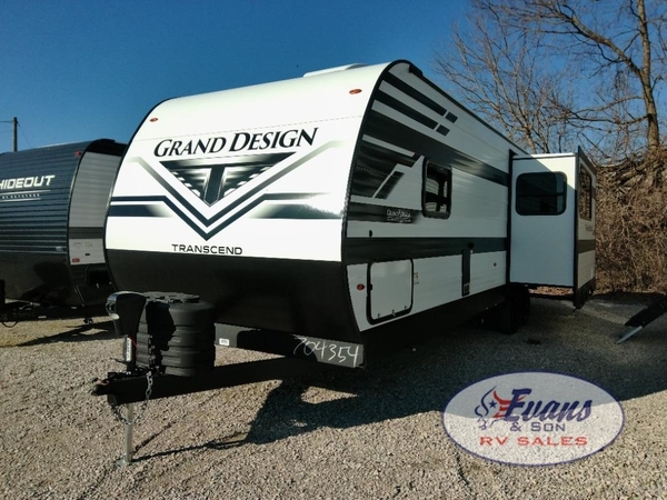 With any Transcend travel trailer by Grand Design, you will enjoy upscale appointments and convenient amenities to make each camping experience one to remember! The Quad Seal technology, residential insulated walls, plus heated and enclosed underbelly with suspended tanks make these units solid and durable. There is a black automotive glass door outside, along with a Safe-T-Rail assist on the main entry door, backup camera prep, and a universal docking station. JBL interior and exterior speakers plus a JBL head unit will let you listen to your favorite tunes as you visit under the power awning with LED strip lights. Inside, you'll enjoy multiple outlets to keep your gadgets charged, thermoformed and seamless countertops, and a 6' 6" interior height so you won't feel closed in. The Solar Prep Package will allow you to enjoy off-grid capabilities with a 200W solar panel, which is wired for up to 600W, a 30 AMP Bluetooth solar controller, a 2000W inverter prep, and more!
