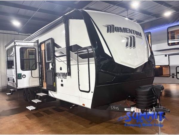 Are you looking for adventure and fun? The Momentum G-Class toy hauler by Grand Design will help you find it! You can explore during any season you choose with the Insulation Package that includes a heated and enclosed underbelly with suspended tanks, a high-capacity furnace, a moisture barrier floor enclosure, and cabinet-mounted heat ducts. Each model includes a high capacity water pump, a dovetail rear end, and 2,500-LB tie-downs anchored into the chassis. Throughout the Momentum G-Class interior, you'll enjoy many comfortable features like large panoramic windows, a shower skylight, USB chargers in the bedroom, and residential cabinetry.