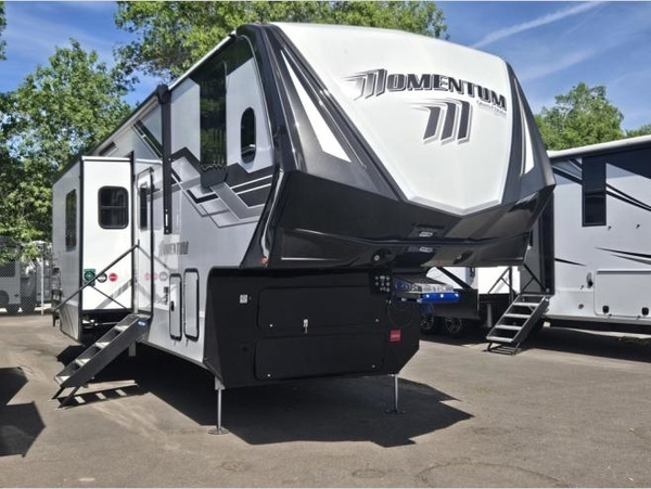 The Momentum fifth wheel toy haulers by Grand Design are built for four seasons of travel with your off-road toys and include luxurious accommodations throughout for extreme living! Each is constructed to a superior standard with the fully enclosed and heated underbelly and storage area, the 5-sided aluminum cage, and the triple insulated garage floor. The MORryde independent suspension 2.0 and rubber pin box, plus the upgraded axle hangers provide the performance and smooth towing you desire, while the interior offers luxury such as color changing LED accent lighting, hardwood cabinet doors with hidden hinges, and a central vacuum system. Each toy hauler also includes four packages, including the Garage Package with Tuff-Ply gas and oil-resistant flooring, the Weather-Tek Package with a Stealth AC System, and the Interior Luxury Package with solid surface countertops!