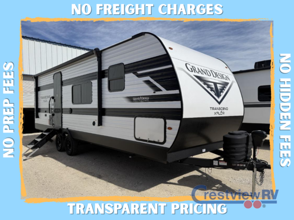 The customer-focused, quality-built Transcend Xplor travel trailers by Grand Design are your ticket to fun and adventure. You will appreciate the power tongue jack when it comes time to set up, as well as the all-in-one utility center and the detachable power cord with an LED light. These models include many outlets throughout, USB ports to charge your gadgets, and a JBL exterior speaker to listen to your favorite tunes. The interior of the Transcend Xplor will have you feeling right at home with upgraded residential furniture, residential countertops, residential cabinet doors, and the list goes on!
