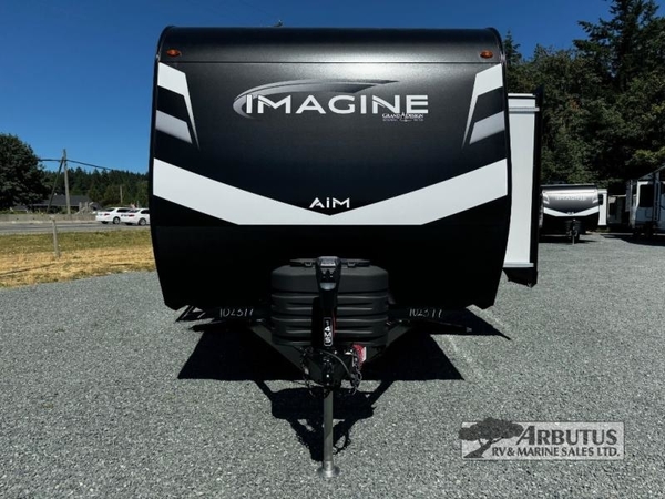 Aim for new destinations in one of these Grand Design Imagine AIM travel trailers! They are constructed to a superior standard with the 4-Seasons Protection Package that features a heated and enclosed underbelly with suspended tanks, a moisture barrier floor enclosure, a double insulated roof and front wall, and more. There is backup camera prep outside, along with a universal docking station, a power tongue jack, and durable Tuff-Ply pass-thru flooring for your camp gear. You are sure to feel at home with residential cabinetry, premium window treatments, residential countertops, and a spacious walk-in shower to name a few comforts. The on-demand tankless water heater is a feature you won't want to camp without and the hi-definition LED TV will ensure you'll never go bored on rainy days. Each model also comes with four AIM packages; the Peace of Mind Package, The Ultimate Power Package, The 4-Season Protection Package, and the Solar Package!