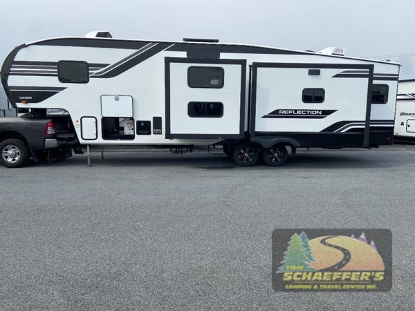 With any Reflection fifth wheel by Grand Design, you will have a solar panel for off-grid camping and a 60 amp charge controller and inverter prep, a Universal All-In-One docking station, unobstructed pass-through storage, and Goodyear Endurance tires. Each is constructed of gel coat exterior sidewalls, residential 5" truss rafters, walk-on roof decking, a fiberglass and radiant foil roof and front cap insulation plus laminated aluminum framed side walls, roof and end walls in slide rooms. Head inside to enjoy residential hardwood cabinet doors, premium Congoleum flooring, a spacious shower with a glass door, and many more comforts!