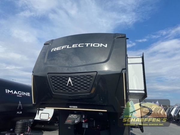 With any Reflection fifth wheel by Grand Design, you will have a solar panel for off-grid camping and a 60 amp charge controller and inverter prep, a Universal All-In-One docking station, unobstructed pass-through storage, and Goodyear Endurance tires. Each is constructed of gel coat exterior sidewalls, residential 5" truss rafters, walk-on roof decking, a fiberglass and radiant foil roof and front cap insulation plus laminated aluminum framed side walls, roof and end walls in slide rooms. Head inside to enjoy residential hardwood cabinet doors, premium Congoleum flooring, a spacious shower with a glass door, and many more comforts!