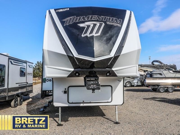 Are you looking for adventure and fun? The Momentum G-Class toy hauler by Grand Design will help you find it! You can explore during any season you choose with the Insulation Package that includes a heated and enclosed underbelly with suspended tanks, a high-capacity furnace, a moisture barrier floor enclosure, and cabinet-mounted heat ducts. Each model includes a high capacity water pump, a dovetail rear end, and 2,500-LB tie-downs anchored into the chassis. Throughout the Momentum G-Class interior, you'll enjoy many comfortable features like large panoramic windows, a shower skylight, USB chargers in the bedroom, and residential cabinetry.