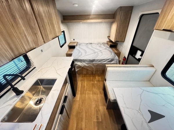 With any Winnebago Access travel trailer you will find thoughtful, clean, and contemporary designs filled with premium features that all have come to expect on any Winnebago towable. There are single and tandem axle models available, each with superior storage, durable construction, and spacious interiors. Each model features an NXG engineered frame, a one-piece TPO roof membrane, and durable sidewall metal, providing a long-lasting RV. The functional galley kitchen will make time at the campground easier than ever, and the stylish roller shades will provide privacy and shade when you need it!