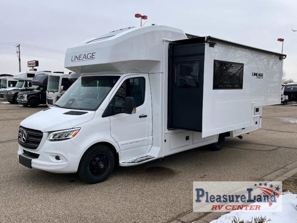 Grand Design's first motorized coach, the Lineage Series M is coming to you with luxurious features at a great value. This Class C diesel motorhome sits on a Mercedes-Benz sprinter chassis for quality and performance you can trust. True to Grand Design's foundation, the Lineage includes interior comforts, durable construction, innovative features, and attention to detail. The Series M Package includes natural teak wood grain, a Lineage Suspension Package, and more. There is also a Blackout Package with black aluminum wheels, a Chromeout Package with chrome aluminum wheels, plus additional packages to enhance your travel experience!