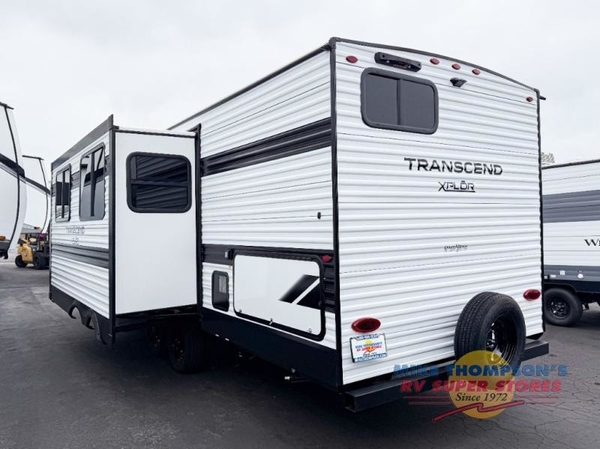 The customer-focused, quality-built Transcend Xplor travel trailers by Grand Design are your ticket to fun and adventure. You will appreciate the power tongue jack when it comes time to set up, as well as the all-in-one utility center and the detachable power cord with an LED light. These models include many outlets throughout, USB ports to charge your gadgets, and a JBL exterior speaker to listen to your favorite tunes. The interior of the Transcend Xplor will have you feeling right at home with upgraded residential furniture, residential countertops, residential cabinet doors, and the list goes on!