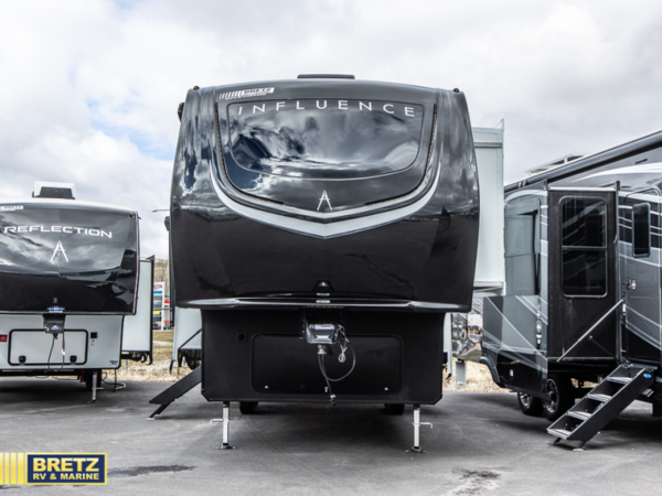 Any Grand Design Influence fifth wheel features five-sided aluminum cage construction with a walk-on roof and a fully enclosed underbelly with heated tanks and storage for all weather camping. For peace of mind, the MORryde CRE3000 Suspension system will provide safe and smooth towing, and the 101" widebody construction offers all the room you need and that is before multiple slides are fully engaged. You will appreciate the Keyed-Alike locks, slam-latch baggage doors with magnetic door catches, exterior security light, and SolidStep entry steps. On the inside, Congoleum flooring, premium roller shades for privacy, a hallway handrail for safety, and nightstands with USB ports to keep all of your electronics fully charged. You will also love the on demand tankless water heater when showering, plus the added heat and ambiance from an electric fireplace, and so much more!