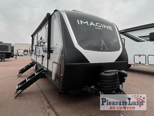 Just imagine leaving the world behind and secluding yourself away with your favorite people in your Grand Design Imagine travel trailer! The Imagine has been designed to enjoy camping and includes a high-capacity furnace, a heated and enclosed underbelly with suspended tanks, a designated heat duct to the subfloor, and a high-density roof insulation with attic vent. You'll have a large panoramic window to let natural lighting in and an adjustable Power Awning with LED Lights for those night gatherings. The exclusive drop-frame pass-through storage compartment is going to allow you to bring along lots of equipment, and the universal docking station is an all-in-one location for utilities and hook-ups. You'll also have oversized tank capacities so that you can fill and empty your tanks less often.