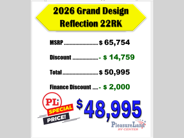 Each Reflection 100 Series fifth wheel by Grand Design is affordable and packed with luxury for unforgettable camping memories! The MorRyde CRE3000 suspension system and Goodyear Endurance tires will provide smooth towing from home to campground. And the solar package with a 180W solar panel, 60 Amp charge controller and 12V refrigerator will allow you to camp for longer periods of time and in more locations! A heated and enclosed underbelly with circulating heat is included in the Arctic 4-Seasons Protection Package, along with a double insulated roof and front cap, and thermofoil insulation under the holding tanks so you can camp all year long if you choose. You will appreciate having an on-demand water heater for hot showers after exploring, and the universal all-in-one docking station will let you monitor your RVs tanks levels and functions with ease. These models also include many luxurious interior features, such as premium Congoleum flooring, pleated shades, residential cabinetry, and matte black fixtures and hardware. Don't let the Reflection 100 Series fifth wheels pass you by!