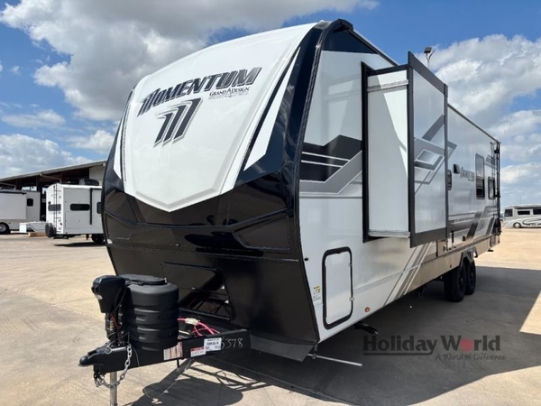 Are you looking for adventure and fun? The Momentum G-Class toy hauler by Grand Design will help you find it! You can explore during any season you choose with the Insulation Package that includes a heated and enclosed underbelly with suspended tanks, a high-capacity furnace, a moisture barrier floor enclosure, and cabinet-mounted heat ducts. Each model includes a high capacity water pump, a dovetail rear end, and 2,500-LB tie-downs anchored into the chassis. Throughout the Momentum G-Class interior, you'll enjoy many comfortable features like large panoramic windows, a shower skylight, USB chargers in the bedroom, and residential cabinetry.