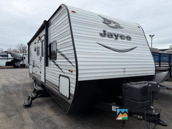 Come see just how fun and easy camping can be in this single slide out travel trailer by Jayco. The Jay Flight SLX 242BHSW features a u-dinette, double bunk beds, and an outside kitchen.