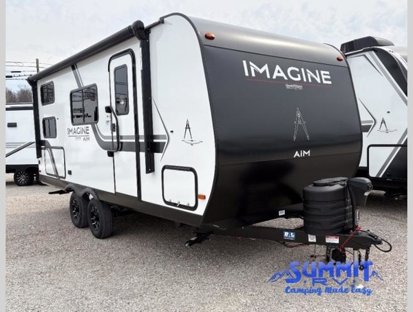 Aim for new destinations in one of these Grand Design Imagine AIM travel trailers! They are constructed to a superior standard with the 4-Seasons Protection Package that features a heated and enclosed underbelly with suspended tanks, a moisture barrier floor enclosure, a double insulated roof and front wall, and more. There is backup camera prep outside, along with a universal docking station, and a power tongue jack. You are sure to feel at home with residential cabinetry, premium window treatments, residential countertops, and a spacious walk-in shower to name a few comforts. The on-demand tankless water heater is a feature you won't want to camp without and the hi-definition LED TV will ensure you'll never go bored on rainy days. Each model also comes with four AIM packages; the Peace of Mind Package, The Ultimate Power Package, The 4-Season Protection Package, and the Solar Package!