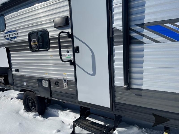 Each one of these Forest River Salem FSX travel trailer and travel trailer toy haulers are fully featured, light weight, and easy to tow making them perfect for a first time or seasoned camper! They are built with a SuperFlex one piece roof, a powder coated I-beam frame, and an aerodynamic front radius profile for better wind resistance. With the largest in class opening panoramic windows, you will have a great view of your beautiful surroundings and enjoy fresh breezes of air throughout. A diamond plate front rock guard will protect your unit from road debris and the Tuffcoat scratch resistant exterior paint helps to keep any dings or bumps from scratching it. The Best-In-Class package comes with an AccessiBelly enclosed underbelly to keep your units vitals safe through every season, a XL folding grab assist handle to safely enter and exit, and an upgraded appliance package to prepare your best meals. Come find the model that best fits your needs today!