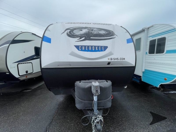 The Cherokee Alpha Wolf travel trailer is the first of Cherokee's line up to be fully laminated, which makes them lightweight, well insulated, and able to provide a sleek and modern exterior. The tire pressure monitoring system and exterior shower with hot and cold water add to the usefulness and value of the Alpha Wolf, and the LED lighting on both the exterior and interior delivers a bright and cheerful atmosphere no matter what time of day it is. Inside of the Alpha Wolf you will find blackout kitchen appliances in the kitchen and plenty of storage for your pots and pans underneath the sink.