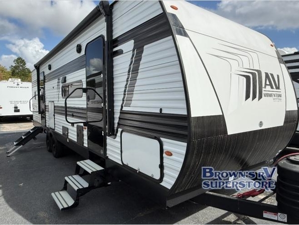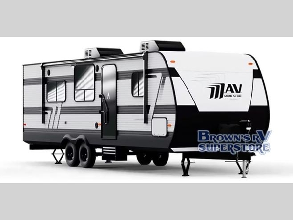 The Momentum MAV toy hauler travel trailers by Grand Design are designed to provide exactly what you need. The spacious garage provides tons of cargo space, with no wheel wells to get in the way. Additional storage includes magnetic storage door catches, and overhead consoles throughout. Conveniences like motion sensor lights and USB outlets will make your life easier, and you will be comfortable in all seasons with the 30K BTU furnace plus 15K BTU ducted air conditioning. The standard Solar Package comes with a 180W solar panel, a 40 Amp charge controller with Bluetooth, and a 12V refrigerator so you can go off-grid when the adventure calls for it.