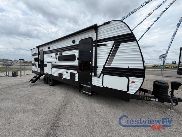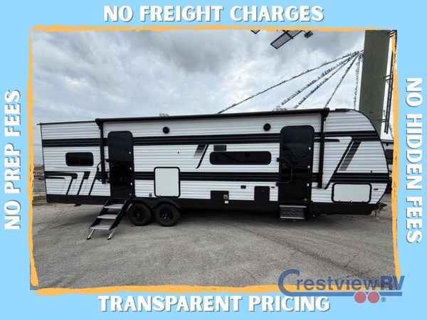 The spacious garage area is perfect for hauling your favorite toys, and the two entry/exit doors make it easy to get in and out. The front bedroom is a peaceful retreat, featuring a queen bed, wardrobes, and plenty of storage for your gear. Further in the heart of this unit, the U-shaped dinette is perfect for enjoying meals or game nights, and the pull-out trash makes cleanup a breeze. The kitchen is equipped with a microwave and 8 cu refrigerator, so you can fuel up for your next adventure. The theater seating is perfect for movie nights or catching up on your favorite shows, and the electric Happijac bunks provide a comfortable spot to rest. The full bathroom is a refreshing oasis, equipped with everything you need to start your day feeling revitalized.