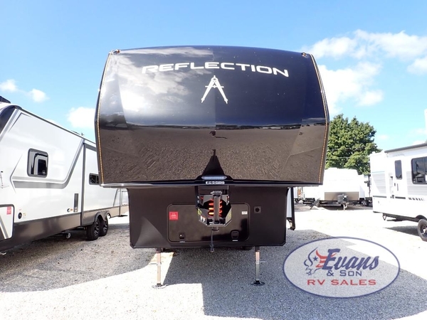 With any Reflection 150 Series fifth wheel by Grand Design, there is more available payload capacity and a broader range of half-ton trucks capable of towing this fifth wheel, and no slider hitch is needed thanks to the 90-degree turning radius which makes them short bed friendly and easier to tow. The mandatory Ultimate Power package provides a "One-Touch" automatic leveling system and a detachable power cord with LED light for easy setup, plus motion sensor pass-through lighting and entry lighting, and the Tire Linc TPMS will help you stay safe on the road. The interior offers residential luxury from the cabinetry and premium Congoleum flooring, to the booth dinette and residential-style window treatment. Make your refined decision today!