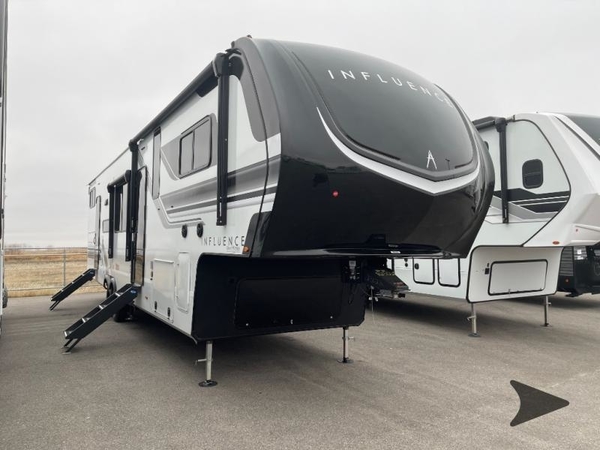 Any Grand Design Influence fifth wheel features five-sided aluminum cage construction with a walk-on roof and a fully enclosed underbelly with heated tanks and storage for all weather camping. For peace of mind, the MORryde CRE3000 Suspension system will provide safe and smooth towing, and the 101" widebody construction offers all the room you need and that is before multiple slides are fully engaged. You will appreciate the Keyed-Alike locks, slam-latch baggage doors with magnetic door catches, exterior security light, and SolidStep entry steps. On the inside, Congoleum flooring, premium roller shades for privacy, a hallway handrail for safety, and nightstands with USB ports to keep all of your electronics fully charged. You will also love the on demand tankless water heater when showering, plus the added heat and ambiance from an electric fireplace, and so much more!