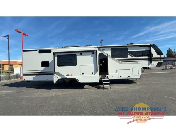 Any Grand Design Influence fifth wheel features five-sided aluminum cage construction with a walk-on roof and a fully enclosed underbelly with heated tanks and storage for all weather camping. For peace of mind, the MORryde CRE3000 Suspension system will provide safe and smooth towing, and the 101" widebody construction offers all the room you need and that is before multiple slides are fully engaged. You will appreciate the Keyed-Alike locks, slam-latch baggage doors with magnetic door catches, exterior security light, and SolidStep entry steps. On the inside, Congoleum flooring, premium roller shades for privacy, a hallway handrail for safety, and nightstands with USB ports to keep all of your electronics fully charged. You will also love the On Demand tankless water heater when showering, plus the added heat and ambiance from an electric fireplace, and so much more!