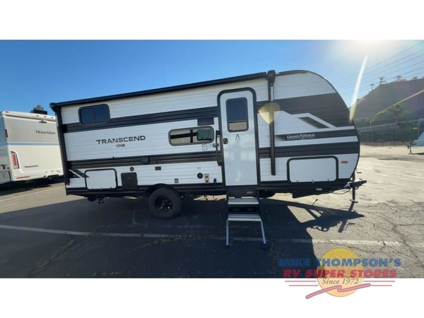 With any Transcend One travel trailer by Grand Design, you will enjoy lightweight towing thanks to their single axle. There are many interior comforts to make camping easier than ever, such as recessed lighting, residential countertops, and a 6' 6" interior height. Each model is constructed with a heated and enclosed underbelly with suspended tanks, a moisture barrier floor enclosure, and Thermofoil over the roof and front cap for added protection. And a JBL sound system will let you listen to tunes as you visit under the power awning with a Fusion light!