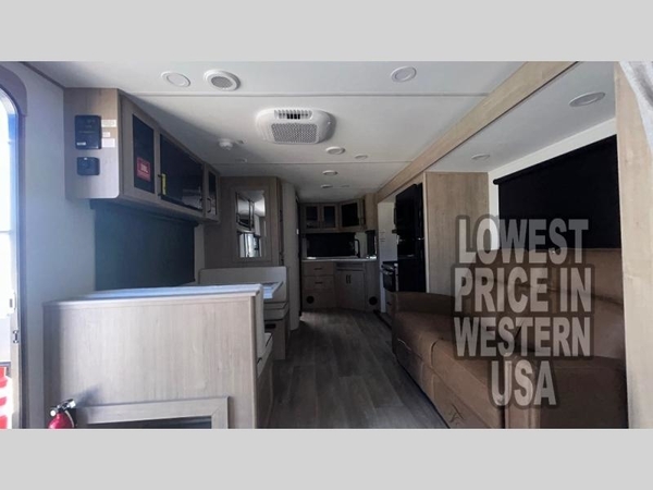 This Imagine XLS travel trailer has theater seating and a booth dinette that you can use any time you need a little break from the outdoors. If you want to come in and grab a coffee, put together a puzzle, or work on your itinerary for the week, just put up your feet and relax. You could even switch on the LED HDTV if you want a little entertainment. The front queen-size bed has a privacy curtain that you can draw to create a semi-private bedroom, and in the back of the trailer you will find the rest of your amenities, like the kitchen and the bathroom. The large slide makes it easy to enjoy spending your time indoors, but if you do want to get back outside, you can sit underneath the 18' electric awning for some shade.