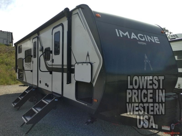 Let your imagination run wild with the possibilities that the Grand Design Imagine XLS travel trailer can provide! The Imagine XLS has been built with oversized tank capacities, an extra-large 2" fresh water drain valve, a ducted A/C system, a power tongue jack, and a heated and enclosed underbelly with suspended tanks. There is a designated heat duct to the subfloor and a residential ductless heating system throughout. For outdoor adventures, the electric awning with LED lights will enable you to stay protected, and the Tuff-Ply pass-thru flooring will withstand your adventures. You will also love the XLS Solar Package that comes with a 200W roof mounted solar panel, a 30 Amp charge controller, a 12V 10 cu. ft. refrigerator, and roof mounted quick connect plugs!