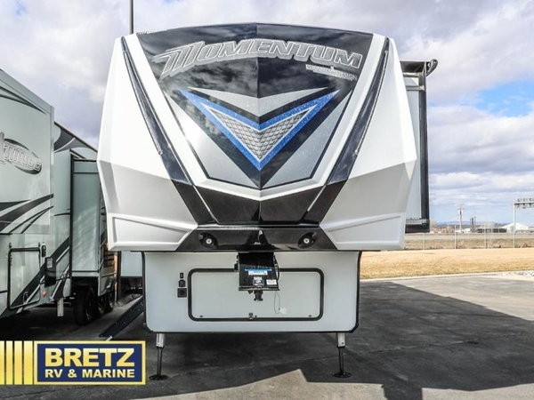 With any Momentum M-Class toy hauler fifth wheel you will enjoy extraordinary living with extreme playtime with the Weather-Tek insulation for four seasons of protection, and a fully enclosed fuel pump station to keep the fun going the whole time. The Tuff-Ply garage flooring is gas and oil resistant, plus triple insulated. You will find 2,500 lb. rated flush-mount tie-downs to keep your toys secure while moving down the road. The interior includes a sofa with headrest and removable swivel table, a convection microwave, a central vacuum system with tools and a dust pan, and a satellite/solar roof access channel to mention a few highlights. Any Grand Design Momentum M-Class allows you to keep your active lifestyle no matter where you decide to stay!