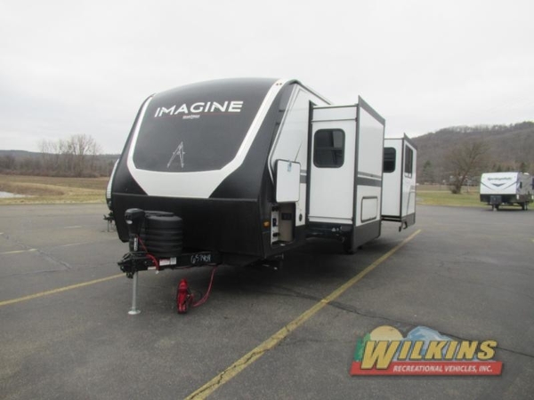 Just imagine leaving the world behind and secluding yourself away with your favorite people in your Grand Design Imagine travel trailer! The Imagine has been designed to enjoy camping and includes a high-capacity furnace, a heated and enclosed underbelly with suspended tanks, a designated heat duct to the subfloor, and a high-density roof insulation with attic vent. You'll have a large panoramic window to let natural lighting in and an adjustable Power Awning with LED Lights for those night gatherings. The exclusive drop-frame pass-through storage compartment is going to allow you to bring along lots of equipment, and the universal docking station is an all-in-one location for utilities and hook-ups. You'll also have oversized tank capacities so that you can fill and empty your tanks less often.