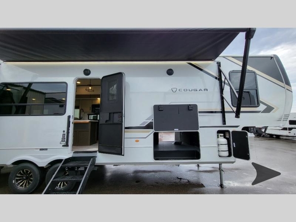 Spend more time having fun and less time worrying about your RV with the Keystone Cougar fifth wheel! These units have all that you will need for excellent vacations. The interior comes with 5/8" one-piece DynaSpan® flooring, tall slide outs for added comfort and head room, night roller shades throughout, and residential, shaker style hardwood cabinet doors and drawers. You will also enjoy decorative crown molding, a 5,500 BTU electric fireplace with thermostat control and remote, and a Max Air exhaust fan with rain sensor. The exterior is also fully outfitted with a convenience center, friction-hinge entry door, electric four-point auto leveling system, and slam-latch baggage doors. Each model is available with the optional Hero Edition. By choosing this edition, you can help support our nation's heros and their families by contributing to the Wounded Warrior Project. This optional package features an industry exclusive full-body paint matte finish, frameless windows, a glass entry door, blackout rims, and green LED exterior accent lighting; see dealer for more details!