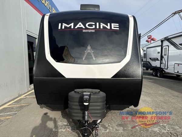 Just imagine leaving the world behind and secluding yourself away with your favorite people in your Grand Design Imagine travel trailer! The Imagine has been designed to enjoy camping and includes a high-capacity furnace, a heated and enclosed underbelly with suspended tanks, a designated heat duct to the subfloor, and a high-density roof insulation with attic vent. You'll have a large panoramic window to let natural lighting in and an adjustable Power Awning with LED Lights for those night gatherings. The exclusive drop-frame pass-through storage compartment is going to allow you to bring along lots of equipment, and the universal docking station is an all-in-one location for utilities and hook-ups. You'll also have oversized tank capacities so that you can fill and empty your tanks less often.