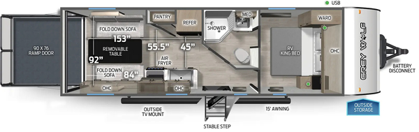 2026 CHEROKEE GREY WOLF TOY HAULER TRAVEL TRAILER 22RR