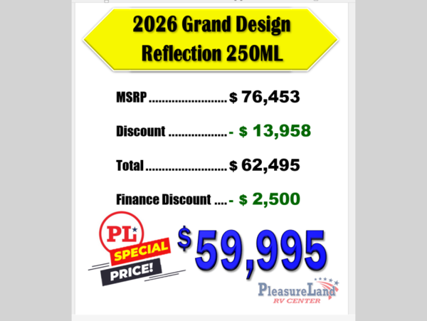 With any Reflection 150 Series fifth wheel by Grand Design, there is more available payload capacity and a broader range of half-ton trucks capable of towing this fifth wheel, and no slider hitch is needed thanks to the 90-degree turning radius which makes them short bed friendly and easier to tow. The mandatory Ultimate Power package provides a "One-Touch" automatic leveling system and a detachable power cord with LED light for easy setup, plus motion sensor pass-through lighting and entry lighting, and the Tire Linc TPMS will help you stay safe on the road. The interior offers residential cabinetry and premium Congoleum flooring, to the booth dinette and residential-style window treatment. Make your refined decision today!