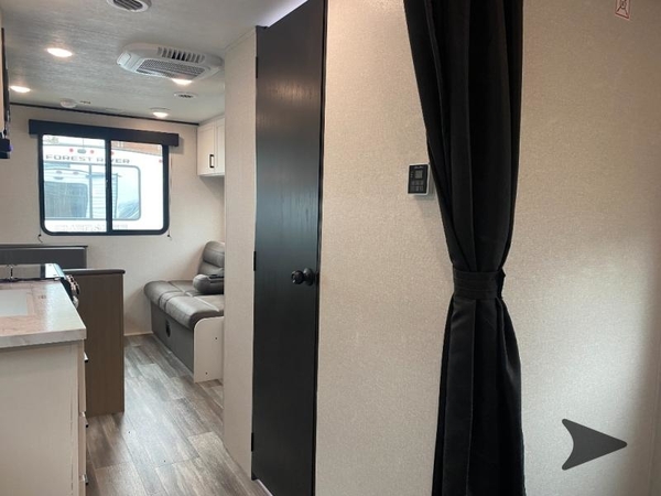 Camping in the woods is just what the doctor ordered and this trailer will provide all the interior comforts you need! There is a three burner cooktop and a microwave oven to prepare meals each day, plus an 8 cu. ft. 12V refrigerator for cold items. After your meal is made, you can dine at the booth dinette or relax on the jack-knife sofa, and these areas can become sleeping space for two to three guests at night. The full bath with a shower means you won't have to use the camp's facilities and the 16' power awning will provide protection from the sun as you visit with other campers!