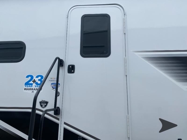 With any Eagle HT fifth wheel or travel trailer by Jayco you will enjoy a smooth drive thanks to the 4 Star Handling Package and MORryde CRE-3000 rubberized suspension. The Customer Value Package includes amenities that are sure to make camping easier than ever, like the 60K on-demand water heater, Keyed-Alike lock system, 15,000 BTU "Whisper Quiet" A/C, and more. Handcrafted door/drawer fronts will make your space feel more like home, along with residential vinyl flooring throughout, GE appliances, and blackout roller shades with reflective side throughout to keep the sun out when you want to sleep in. Each model also includes a NuVo H2O water treatment system with filters included, interior and exterior "Blue Sync" audio connect with MB Quart Sound for your TV and phone, and 100% no floor vents for added comfort and convenience!