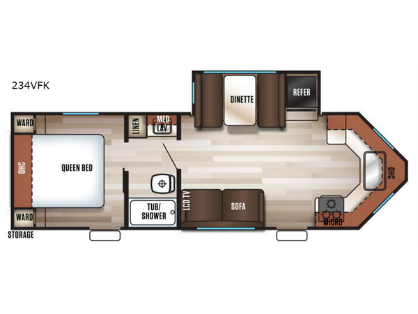Get ready to enjoy each camping trip with your family when you choose to camp with this single slide out Cherokee 234VFK. The v-nose design allows for better aerodynamics. In the front v-nose is the spacious kitchen with plenty of counter space and a large kitchen sink. The walk-through bathroom has doors along either side which adds complete privacy. You will also find that this model has two entry doors which makes it easy to slip out in the early morning and head out to go fishing without waking up your sleeping campers!