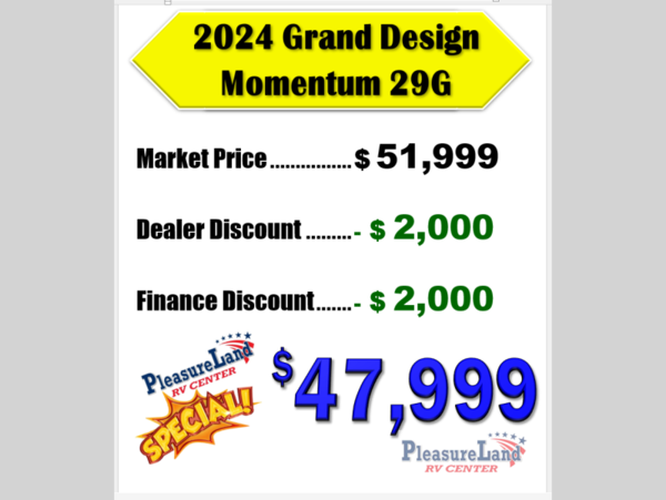 Grand Design Momentum G-Class toy hauler 29G highlights: