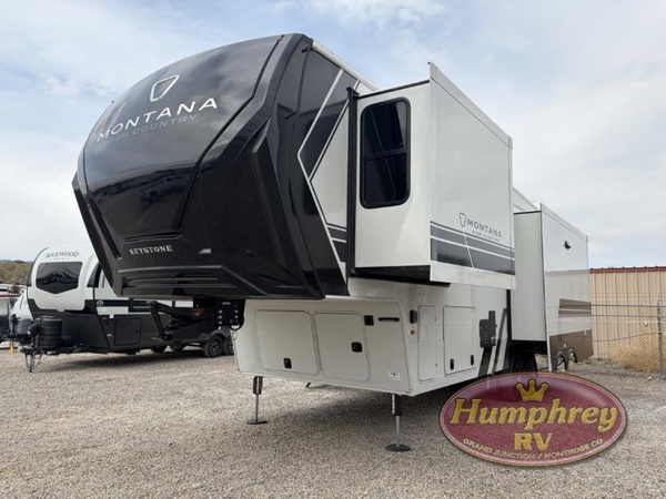 With any Montana High Country fifth wheel by Keystone, you'll find comfort and convenience at every turn! Each unit is built with a fully walkable roof with an Alpha seamless TPO membrane system, 2" thick composite backed high-gloss fiberglass sidewalls, plus an insulated underbelly with forced hot air and electric tank heaters for added protection against the elements. The Blade Pure airflow system provides efficient cooling, and the Tru-Fit slide construction is a durable slide design that minimizes functional motor structural stress and resists leaking. Inside, you'll find roller shades throughout, premium solid surface kitchen countertops, bedside USB and 110V outlets, plus a porcelain foot flush toilet in the bath to name a few comforts.