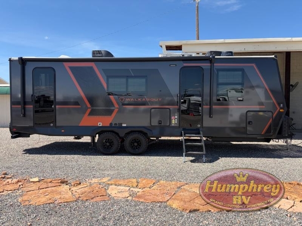 Each Keystone Walkabout travel trailer features a rugged automotive-grade aluminum exterior, designed to withstand the rigors of travel. The 11-gauge aluminum powder corner rails add strength and durability while keeping the trailer lightweight. It is known that storage is key to a comfortable trip. That's why these trailers are designed with maximum storage in mind, providing ample space for all your gear and equipment. You'll also feel like you're gliding down the road, not bouncing along, thanks to the Kurt Touring suspension that ensures a smooth ride, even on rough terrain. Further, the composite solid steps are durable and easy to clean, while the composite Thinscape countertop offers a stylish, low-maintenance surface for food prep and relaxation. Finally, with the 110-volt outlets throughout the trailer, you'll have plenty of power to keep your devices charged and your appliances running.