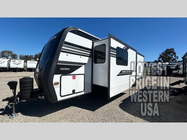 With any Reflection travel trailer by Grand Design, you will have a solar panel for off-grid camping and a 60-amp charge controller and inverter prep, a Universal All-In-One docking station, unobstructed pass-through storage, and Goodyear Endurance tires. Each is constructed of gel coat exterior sidewalls, residential 5" truss rafters, walk-on roof decking, a fiberglass and radiant foil roof and front cap insulation plus laminated aluminum framed side walls, roof and end walls in slide rooms. Head inside to enjoy residential hardwood cabinet doors, premium Congoleum flooring, a spacious shower with a glass door, and many more comforts!