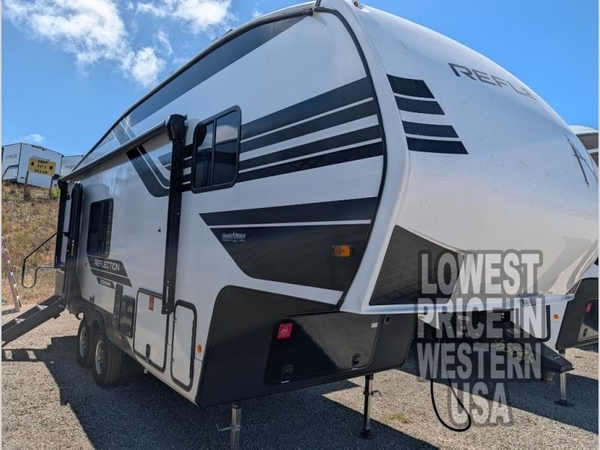 Each Reflection 100 Series fifth wheel by Grand Design is affordable and packed with luxury for unforgettable camping memories! The MorRyde CRE3000 suspension system and Goodyear Endurance tires will provide smooth towing from home to campground. And the solar package with a 180W solar panel, 60 Amp charge controller and 12V refrigerator will allow you to camp for longer periods of time and in more locations! A heated and enclosed underbelly with circulating heat is included in the Arctic 4-Seasons Protection Package, along with a double insulated roof and front cap, and thermofoil insulation under the holding tanks so you can camp all year long if you choose. You will appreciate having an on-demand water heater for hot showers after exploring, and the universal all-in-one docking station will let you monitor your RVs tanks levels and functions with ease. These models also include many luxurious interior features, such as premium Congoleum flooring, pleated shades, residential cabinetry, and matte black fixtures and hardware. Don't let the Reflection 100 Series fifth wheels pass you by!