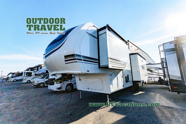 Any Grand Design Influence fifth wheel features five-sided aluminum cage construction with a walk-on roof and a fully enclosed underbelly with heated tanks and storage for all weather camping. For peace of mind, the MORryde CRE3000 Suspension system will provide safe and smooth towing, and the 101" widebody construction offers all the room you need and that is before multiple slides are fully engaged. You will appreciate the Keyed-Alike locks, slam-latch baggage doors with magnetic door catches, exterior security light, and SolidStep entry steps. On the inside, Congoleum flooring, premium roller shades for privacy, a hallway handrail for safety, and nightstands with USB ports to keep all of your electronics fully charged. You will also love the on demand tankless water heater when showering, plus the added heat and ambiance from an electric fireplace, and so much more!