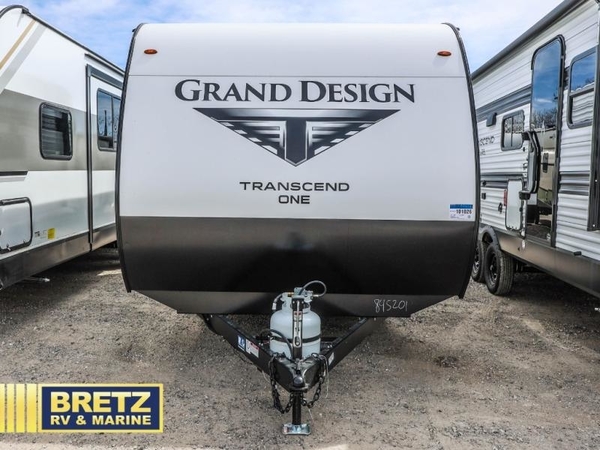 With any Transcend One travel trailer by Grand Design, you will enjoy lightweight towing thanks to their single axle. There are many interior comforts to make camping easier than ever, such as recessed lighting, residential countertops, and a 6' 6" interior height. Each model is constructed with a heated and enclosed underbelly with suspended tanks, a moisture barrier floor enclosure, and Thermofoil over the roof and front cap for added protection. And a JBL sound system will let you listen to tunes as you visit under the power awning with a Fusion light!