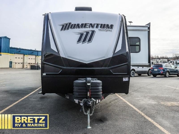 Are you looking for adventure and fun? The Momentum G-Class toy hauler by Grand Design will help you find it! You can explore during any season you choose with the Insulation Package that includes a heated and enclosed underbelly with suspended tanks, a high-capacity furnace, a moisture barrier floor enclosure, and cabinet-mounted heat ducts. Each model includes a high capacity water pump, a dovetail rear end, and 2,500-LB tie-downs anchored into the chassis. Throughout the Momentum G-Class interior, you'll enjoy many comfortable features like large panoramic windows, a shower skylight, USB chargers in the bedroom, and residential cabinetry.