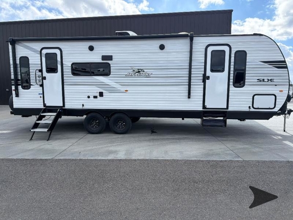 The Jayco Jay Flight SLX travel trailer is quite easy to own because it is lightweight for an easier towing experience. Built on a fully integrated A-frame with galvanized-steel, impact-resistant wheel wells, the Jay Flight SLX has quality at its very foundation. That quality continues on to the electric self-adjusting brakes, easy-lube hubs, Magnum Truss roof system, and LP quick connect. Some of what the mandatory Customer Value Package includes is backup camera prep, Keyed-Alike entry and baggage doors, marine grade exterior speakers, and an on-demand tankless water heater